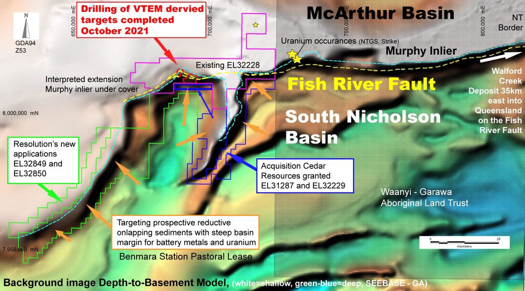 Our recent corporate activity to pick up more of the margin of the South Nicholson Basin gives Resolution a dominant 2,230km2 ground position in which to test for large scale battery metal and uranium deposits in the region.