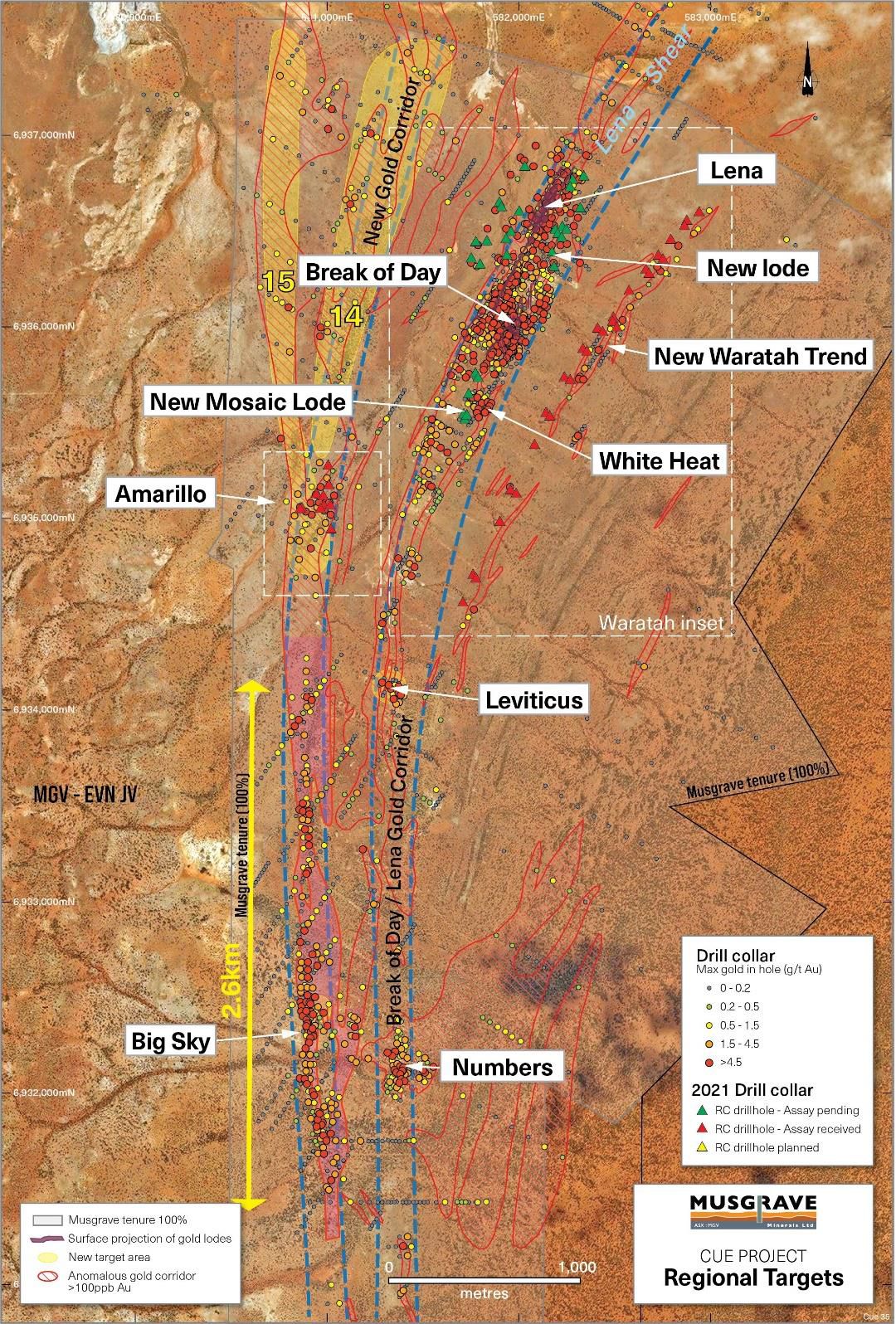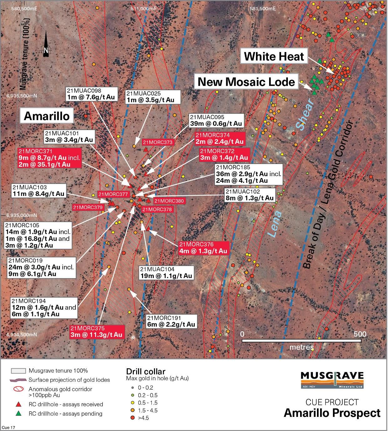 MGVMF:OTCMKTS) is pleased to report further strong assay results from reverse circulation ("RC") drilling at the Amarillo Prospect (previously Target 14), west of Break of Day and additional gold mineralisation identified along a new zone (Waratah zone), 400m east of Break of Day. Both areas are on the Company's 100% owned ground at its flagship Cue Gold Project in Western Australia's Murchison district (Figure 1*).