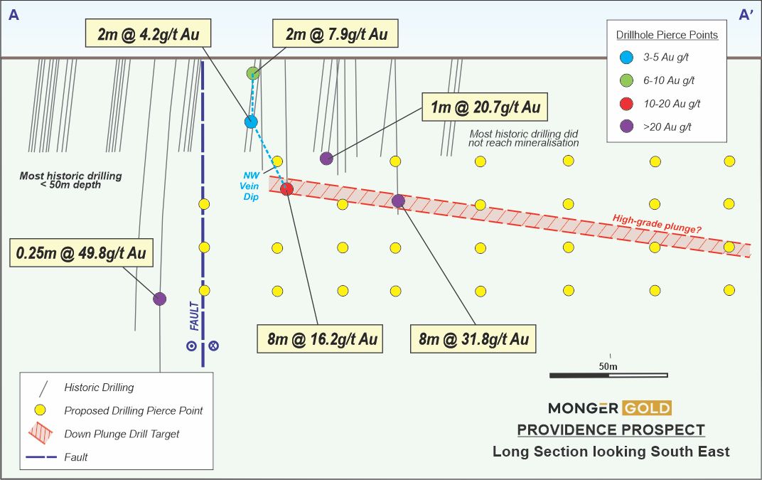 Commenting on the commencement of the drilling campaign, Monger Gold's Chairman Mr Peretz Schapiro said, "The excellent results from our previous drilling campaign demonstrated the prospectivity of the Providence Prospect and confirmed our position that this is a key project area for the Company. Previous explorers overlooked the potential for deeper narrow vein high-grade gold mineralization in the fresh rock, which is the primary focus of our exploration. We are very much looking forward to this next phase of drilling as we look to increase the potential strike and add depth to this high-grade gold system. Subject to results, we anticipate that following this campaign we will be able to release a Maiden Mineral Resource.