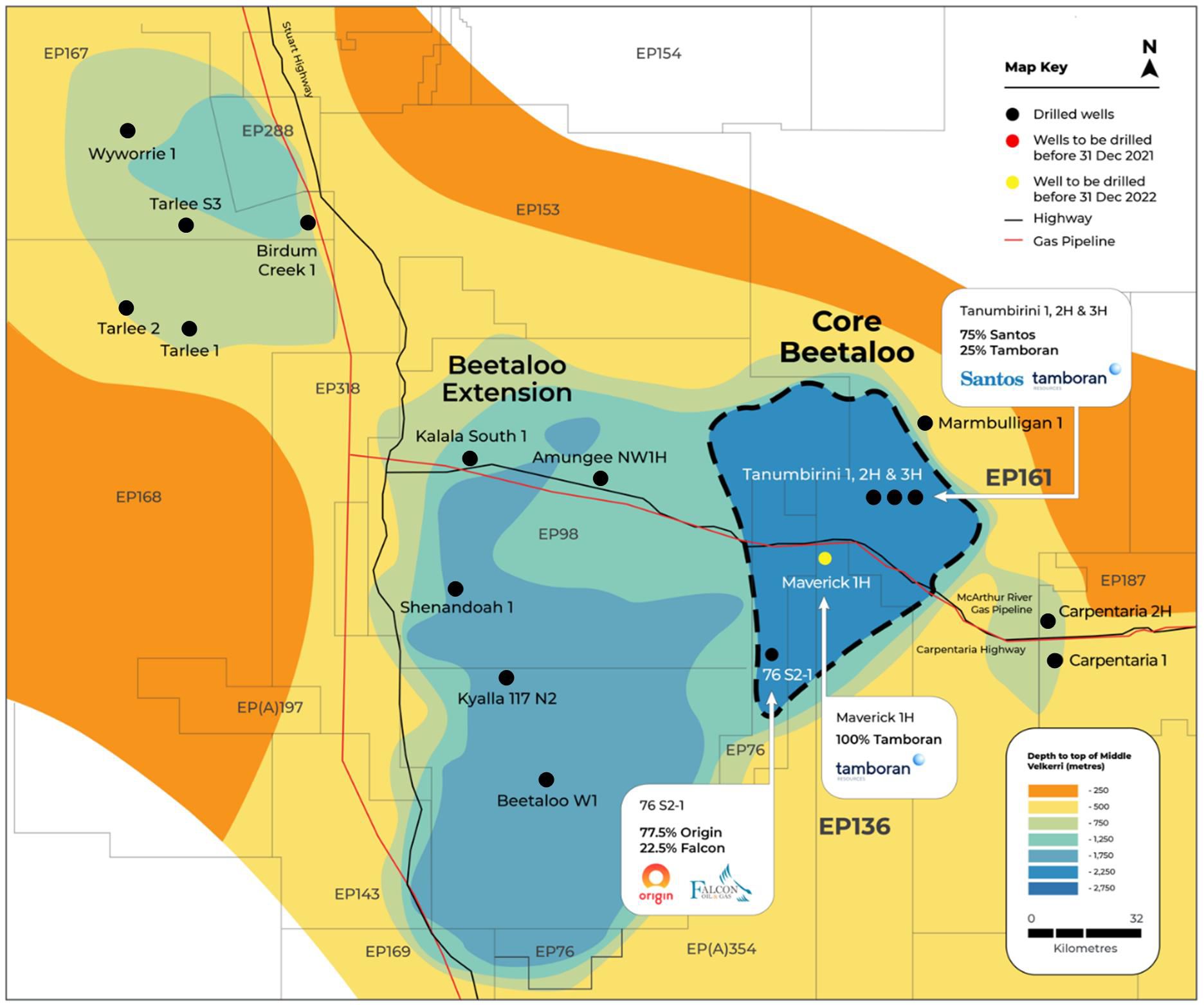 "The drilling of the T2H and T3H wells have de-risked the geology within the Core Beetaloo. Coupled with results from the Velkerri 76 S2-1 well drilled by Origin in the neighbouring permit, EP 76, these results validate an active hydrocarbon system surrounding Tamboran's 100 per cent owned and operated EP 136 permit. We are planning to drill the M1H well between the Tanumbirini and Velkerri 76 S wells, in the heart of the Core Beetaloo.