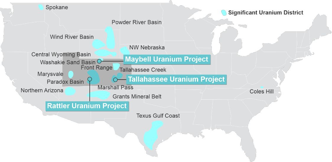 Assets include a strategic position in one of the most prolific uranium districts in the USA - the Tallahassee Creek Uranium District in Colorado. The Tallahassee Uranium Project contains a JORC 2012 Mineral Resource estimate of 27.6 million pounds of U3O8 at a grade of 490ppm U3O8 with significant exploration upside. The greater Tallahassee Creek Uranium District hosts more than 100 million pounds of U3O8 with considerable opportunity to expand the existing resource base by acquiring additional complementary assets in the district.