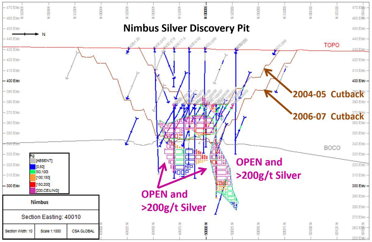 Figure 4* below shows the existing high-grade silver and zinc-silver-lead VHMS lenses previously identified under the Nimbus Discovery and East pits.