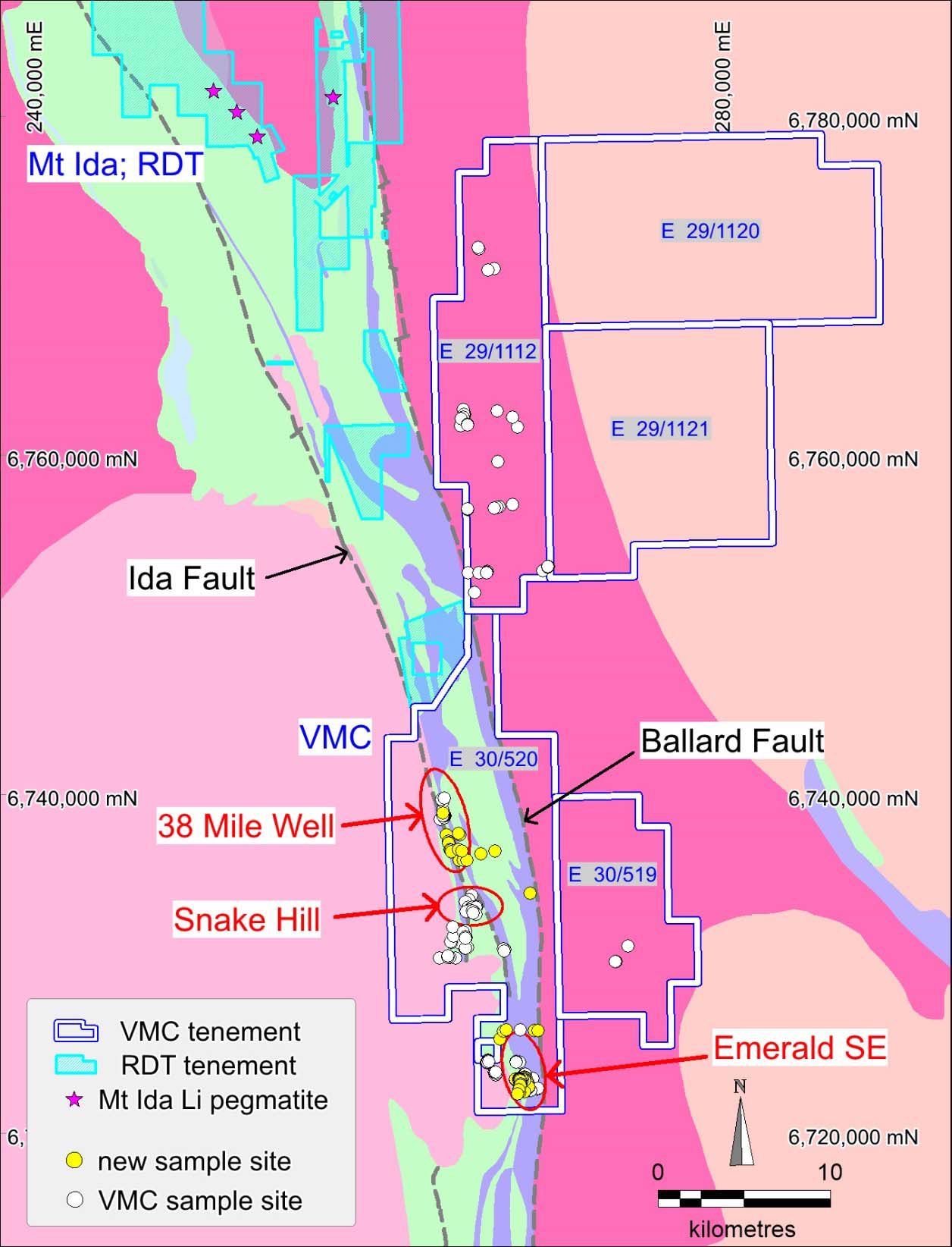 The VMC tenements are located directly south from and abut the Mt Ida Lithium-Copper-Gold project (Red Dirt Metals; RDT).