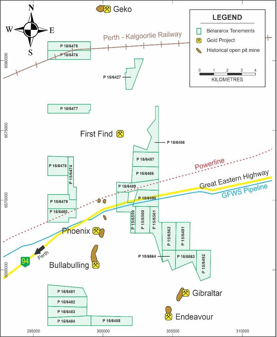 Belararox Limited's 100%-owned Bullabulling Project comprises 26 tenements over 50km2 to the west of Coolgardie in Eastern Goldfield of Western Australia, was initially considered prospective for gold deposits.