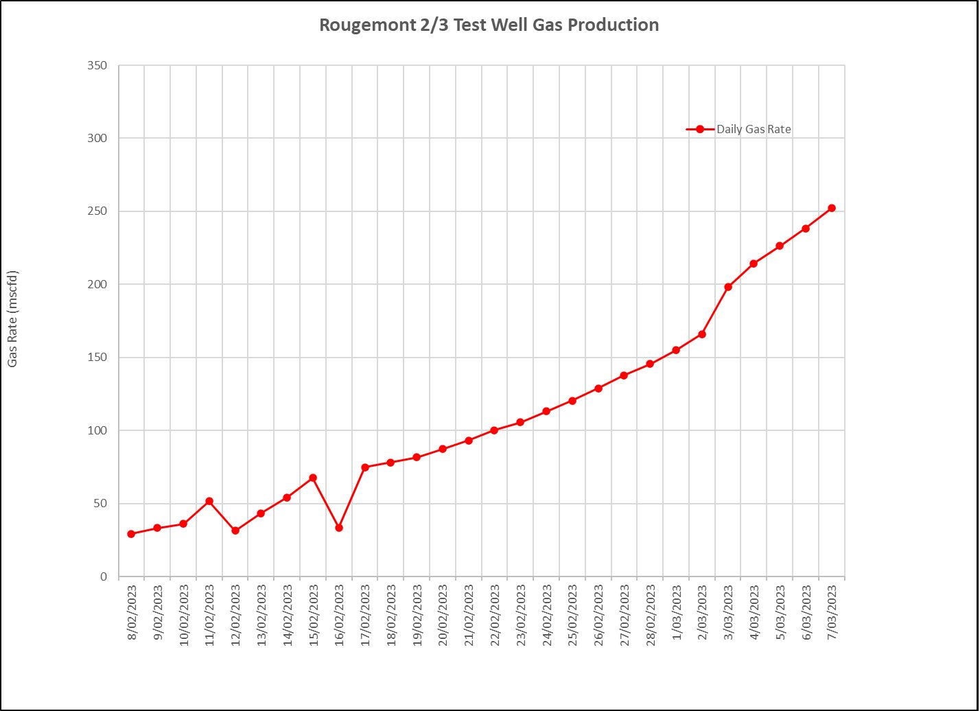 Notwithstanding, a further seventy metres of water yet to be drawn down until the first coal seam is exposed, daily gas production at Rougemont is now exceeding 250,000 cubic feet of gas per day.