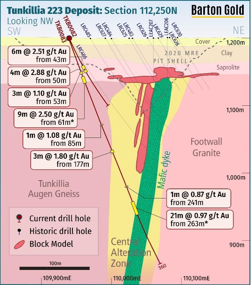 Recent drilling results support Barton's thesis of mineralisation in historically poorly tested areas outside of, and below, the 2020 block model and the potential extension to depth of the 2020 MRE.