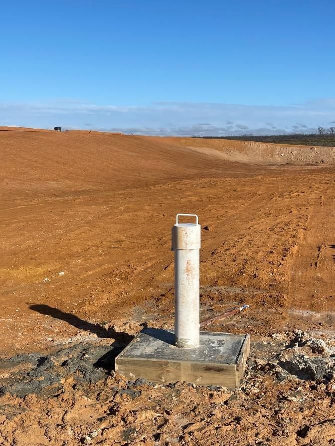 In accordance with the TSF Design (Approved) (REC doc. No. P21-38-PR-02, September 2022), a series of monitoring points, comprising nested VWPs, will be installed at the TSF. These nested VWP arrangements sist of two VWPs, one installed within the embankment 500 mm above the base and the second installed at a depth of 20 m below the natural ground. An additional VWP will be installed downstream of the embankment at a depth of 50 m as a monitoring bore.