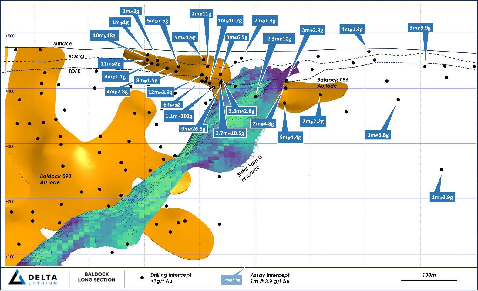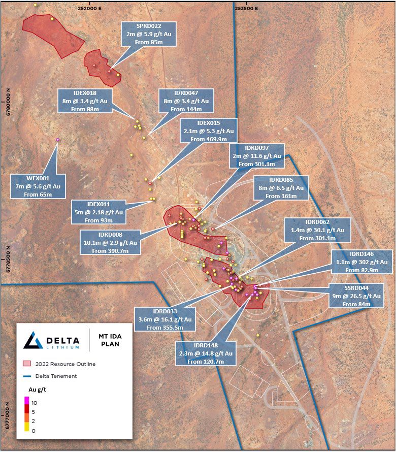 Near surface gold results offer complimentary cashflow opportunity to Delta's Lithium strategy Further investigations will primarily consider gold mineralisation immediately adjacent to lithium resources that could potentially contribute to early cashflow opportunities at the project. Work to compile a gold specific mineral resource estimate has begun.