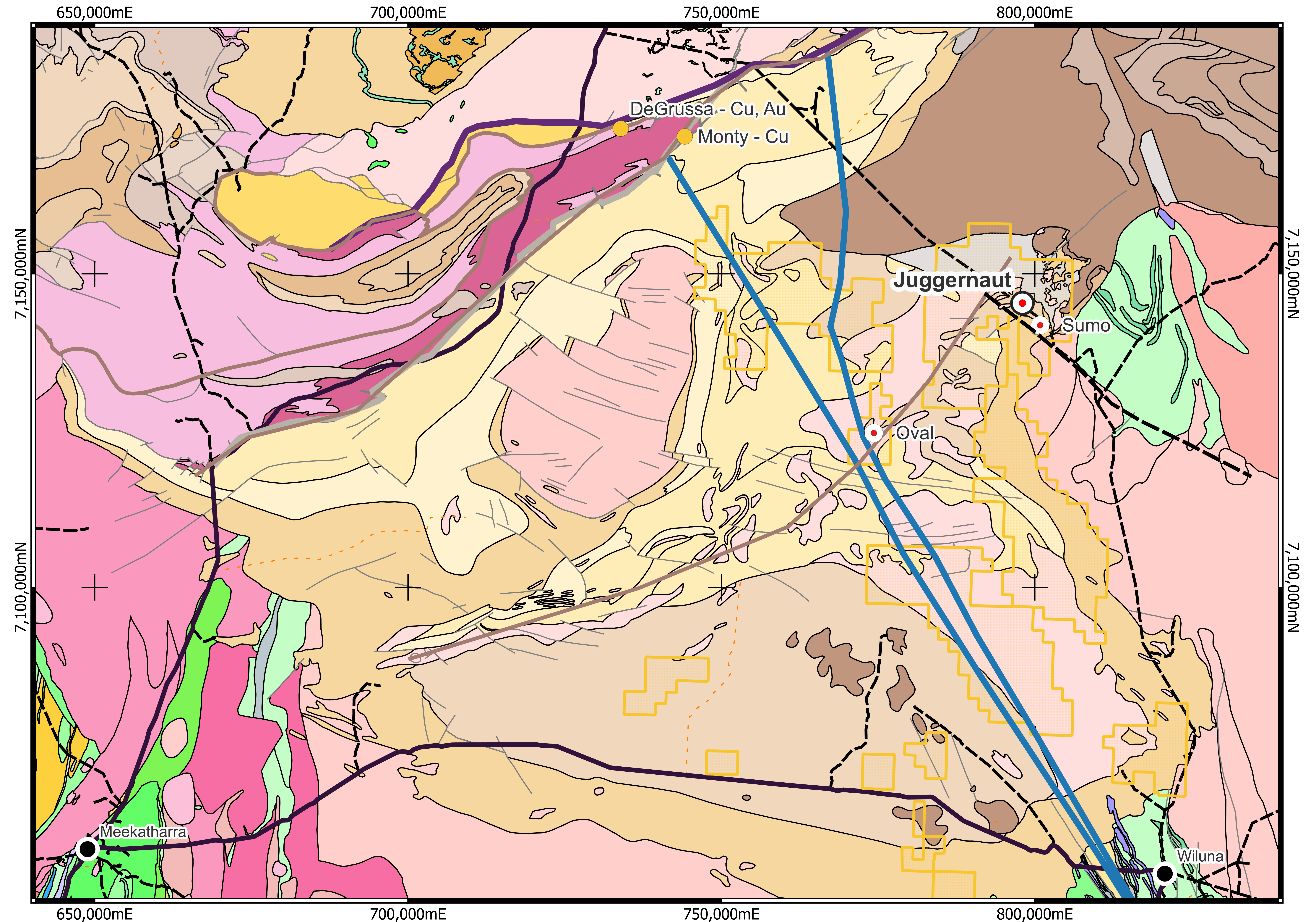 The Juggernaut target is within the Company's Yerrida North Project, located on the western portion of the Yerrida Basin, and located approximately 800km north-east of Perth and 70kms south-east of the DeGrussa and Monty CuAu VHMS deposits, shown in Figure 1*.