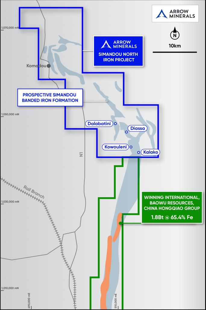 - Arrow's Simandou North Iron Project sits immediately adjacent to the giant Simandou iron ore project being developed by Baosteel, Winning consortium and the SimFer JV