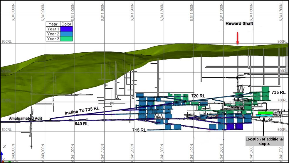 - Stopes are additional to the PFS mine schedule which is illustrated in Figure 2 showing the location of the additional stope.