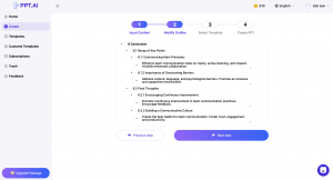 The process of creating a presentation with PPT.AI involves three straightforward steps. Users begin by entering a topic or uploading content, such as a Word document, PDF, or video. The platform’s AI then analyzes the input and generates a structured presentation outline with relevant slides. Finally, intuitive editing tools allow for adjustments to text, colors, or images. Completed presentations can be exported in multiple formats or shared directly with colleagues or clients.