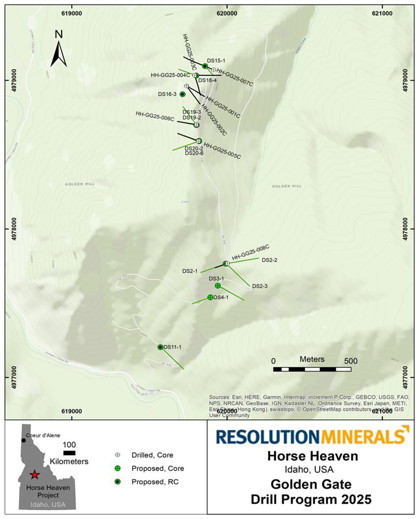 Resolution is pleased to report that it is currently drilling its 9th Core hole at Golden Gate, and has now completed a total of 7,320ft (2,231m) of drilling to date (Table 1*). The Company's drilling contractor, Evolve Exploration Inc., has been operating very efficiently and is on pace to complete approximately 9,000ft (2,740m) of drilling by 30 September 2025. Three holes have been submitted for assay, with results expected from the initial holes within the next four weeks.