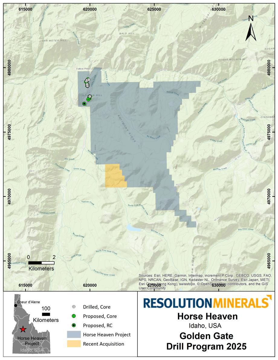 Encouraged by drilling results at the Golden Gate Target, Resolution has requested and received approval for an extended drill season at its Horse Heaven Gold-Antimony-Tungsten-Silver Project located in Idaho, USA.
