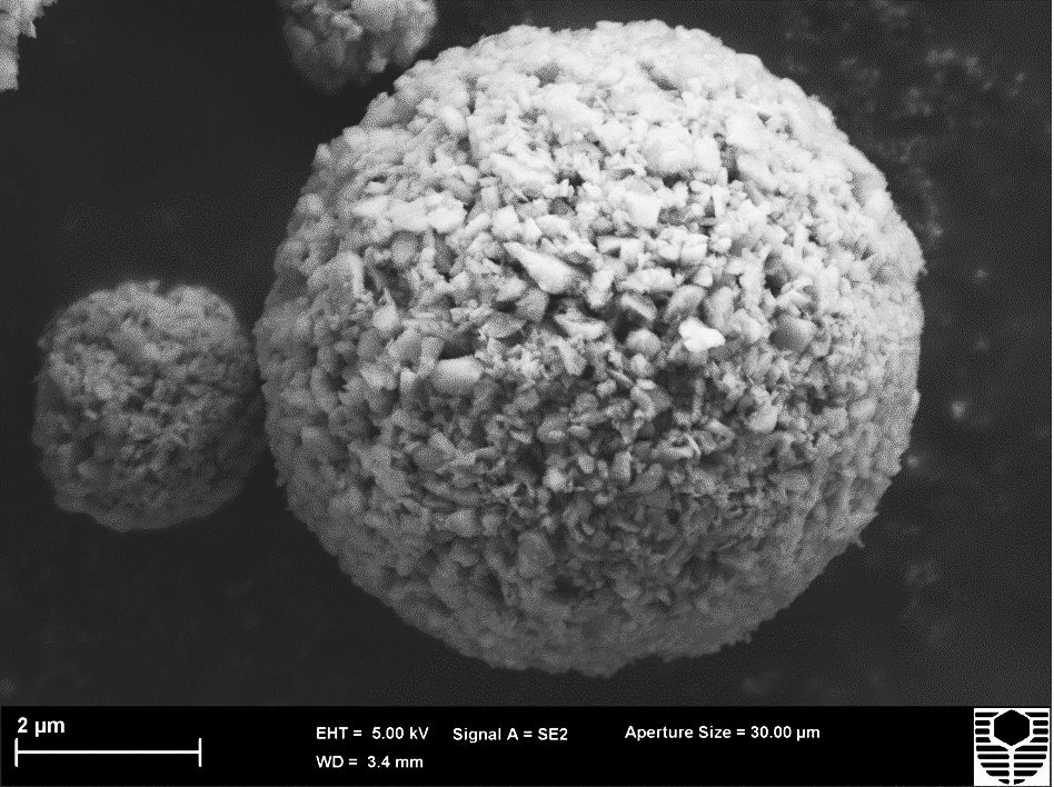 Altech's spherisation process transforms irregular silicon particles into perfectly rounded, alumina-coated spheres that integrate seamlessly within graphite anodes. The process begins with submicron silicon powders that are uniformly coated with a nanolayer of high-purity alumina, buffering against volume expansion during lithiation. These coated particles are then spherified through a precision-controlled thermal and mechanical process that rounds their geometry (See Figure 1*). When blended into the graphite matrix, the spherical Silumina particles naturally occupy microscopic voids, where they can expand and contract freely during cycling without damaging the surrounding structure (See Figure 2*). This optimised configuration mitigates mechanical stress, maintains electrode integrity, and enhances electrical connectivity. With only a 5% addition, the design achieves >40% capacity boost while preserving exceptional cycle stability over extended use.