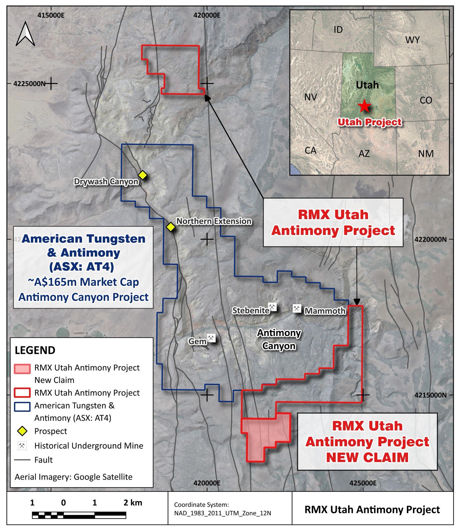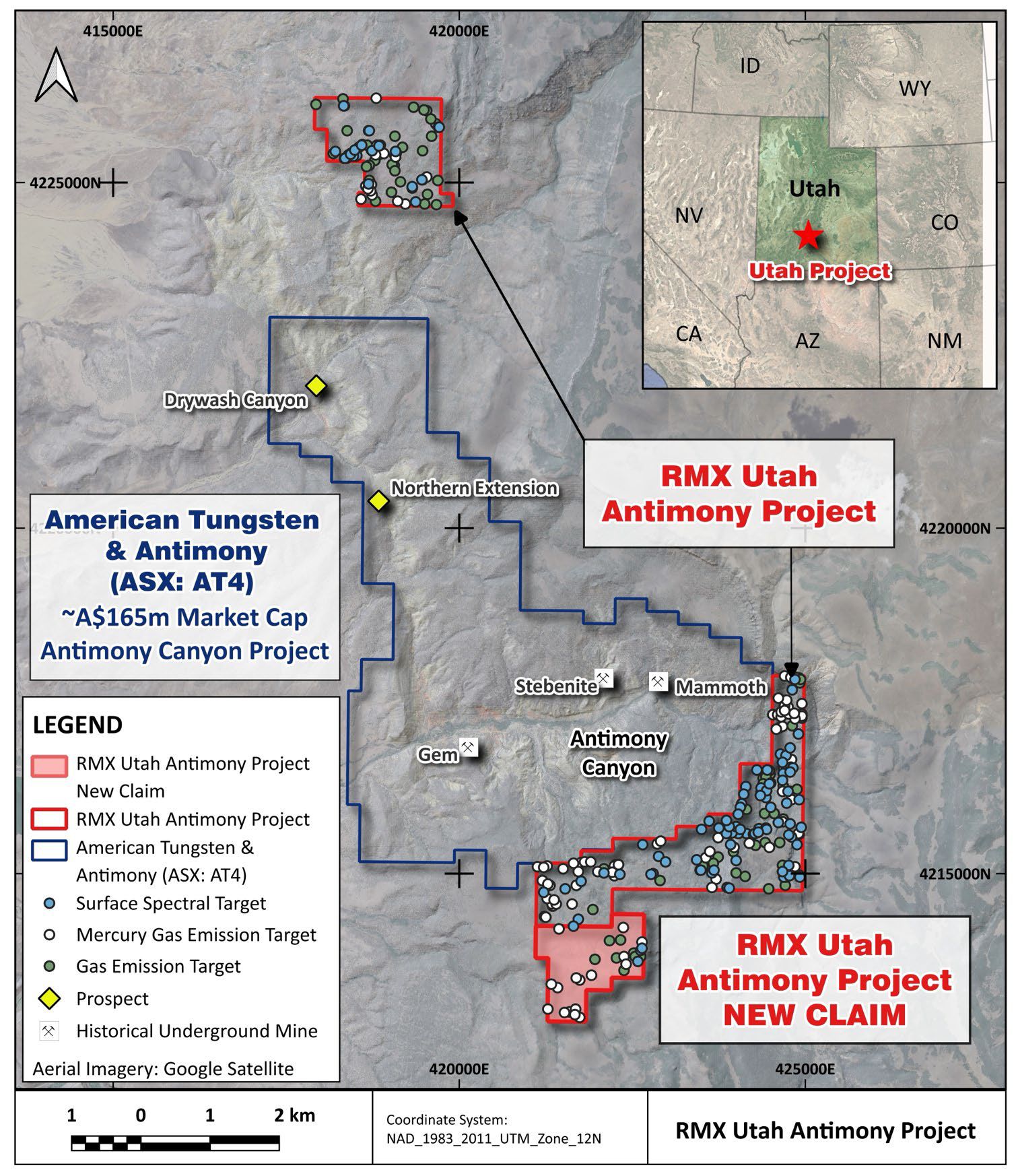 - Red Mountain's Utah Antimony Project directly adjoins American Tungsten and Antimony Ltd's (