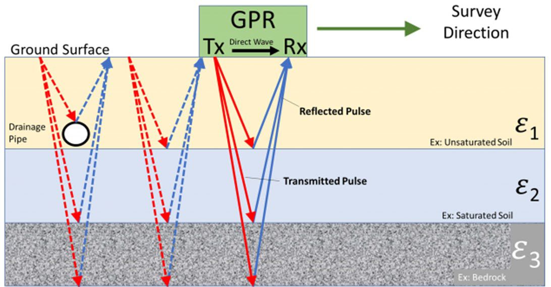 Ground Penetrating Radar (GPR) is a non-invasive geophysical technique that uses high-frequency electromagnetic waves to measure subsurface features. It is used to map sediment thickness, layering and buried structures by measuring reflections from different materials beneath the surface, helping to identify geological features without drilling. GPR units have a potential to reach 20m depth dependant of the conditions and are proven geophysics technique for understanding soil profiles to the bedrock. GPR a rapid way of helping build the understanding of the Blue Lagoon beach profiles and define the size of the target area, due to the nature of the mineralisation in the lagoon beach.