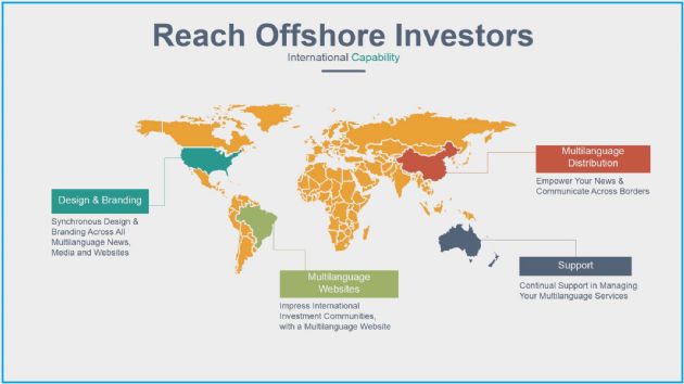Organisations wishing to communicate directly with a professional finance audience can use ABN Newswire to reach investors through Asia in the native language of the reader. Conversely, Asian based corporations can broadcast important company information across the western language set ABN Newswire provides.