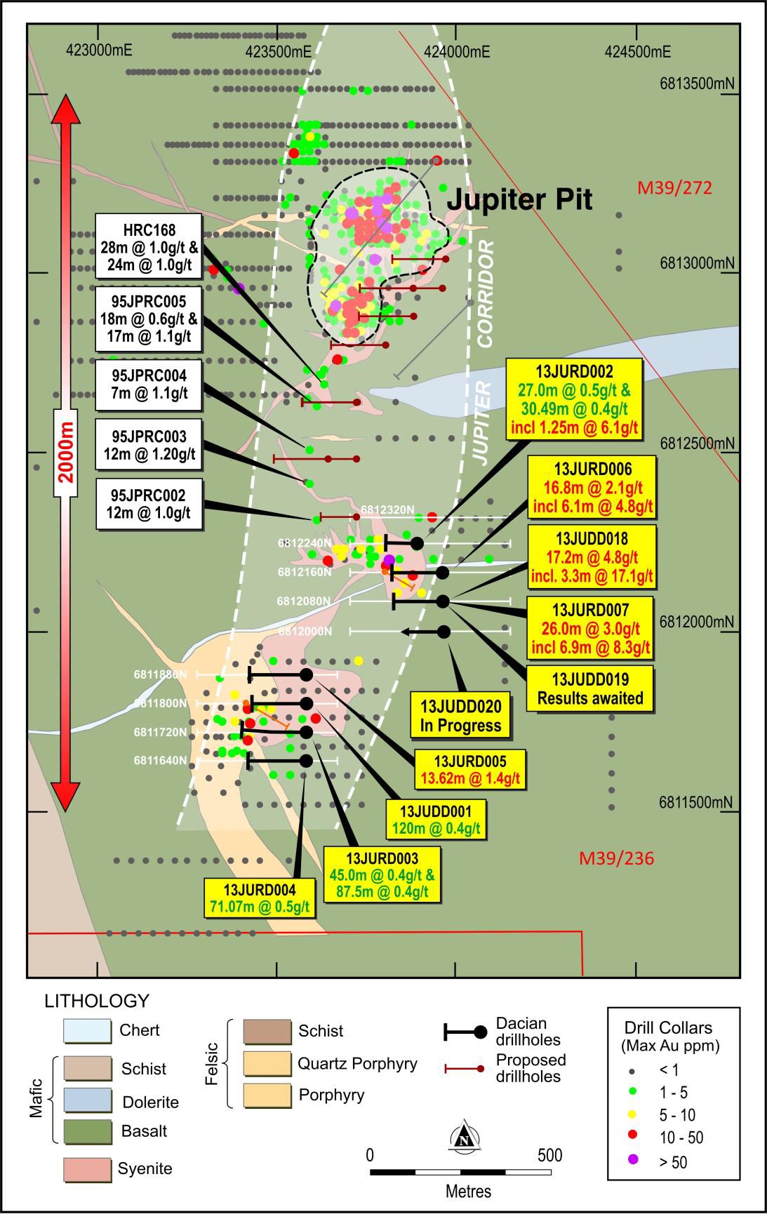 ASX:DCN) ("Dacian") is pleased to announce that another drill hole has intersected a high grade result extending the recently discovered high grade lode position at the Jupiter Prospect.