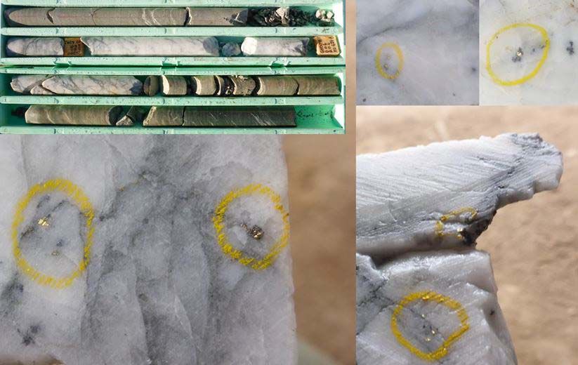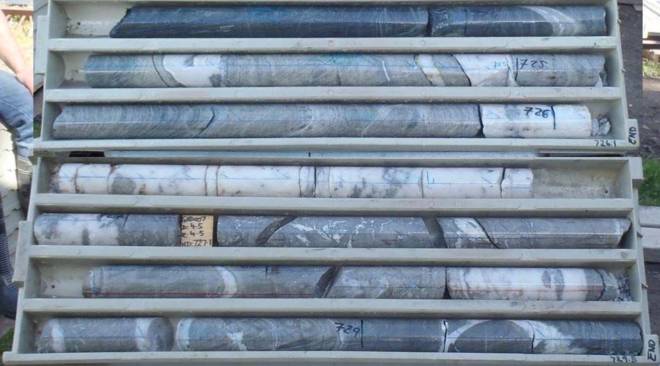 The hole also intersected the interpreted continuation of the Castor Reef approximately 60m along strike to the SE of the 10m @ 17.7g/t Au intercept in hole GHD009 - a 40cm quartz vein with visible gold was encountered within an envelope of strong alteration at ~447m in GHD011. Likewise, the continuation of the White Deer Reef is interpreted as a strong quartz and alteration zone at ~720m in GHD009. In the case of both reefs, quartz float and historic workings indicate that they potentially have vertical extents in excess of 600m from the surface.