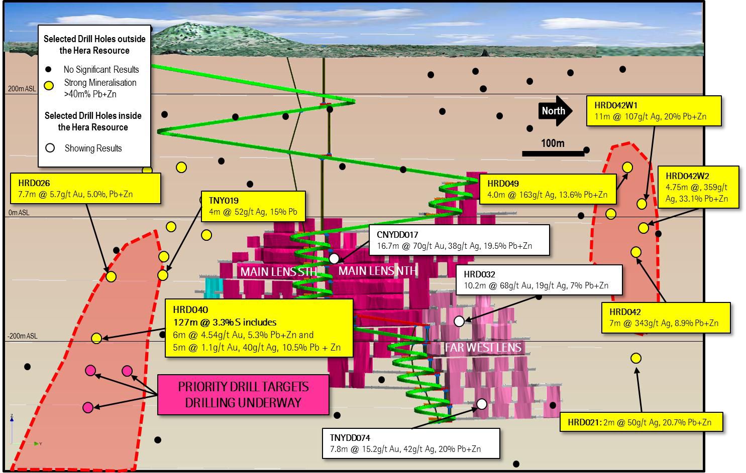 Underground stope delineation drilling in the upper part of the Hera ore-body has commenced. The upper part of the Main North Lens is relatively lead-zinc-rich, gold-poor section of the ore-body, however initial drill results have returned gold results which have exceeded expectations.