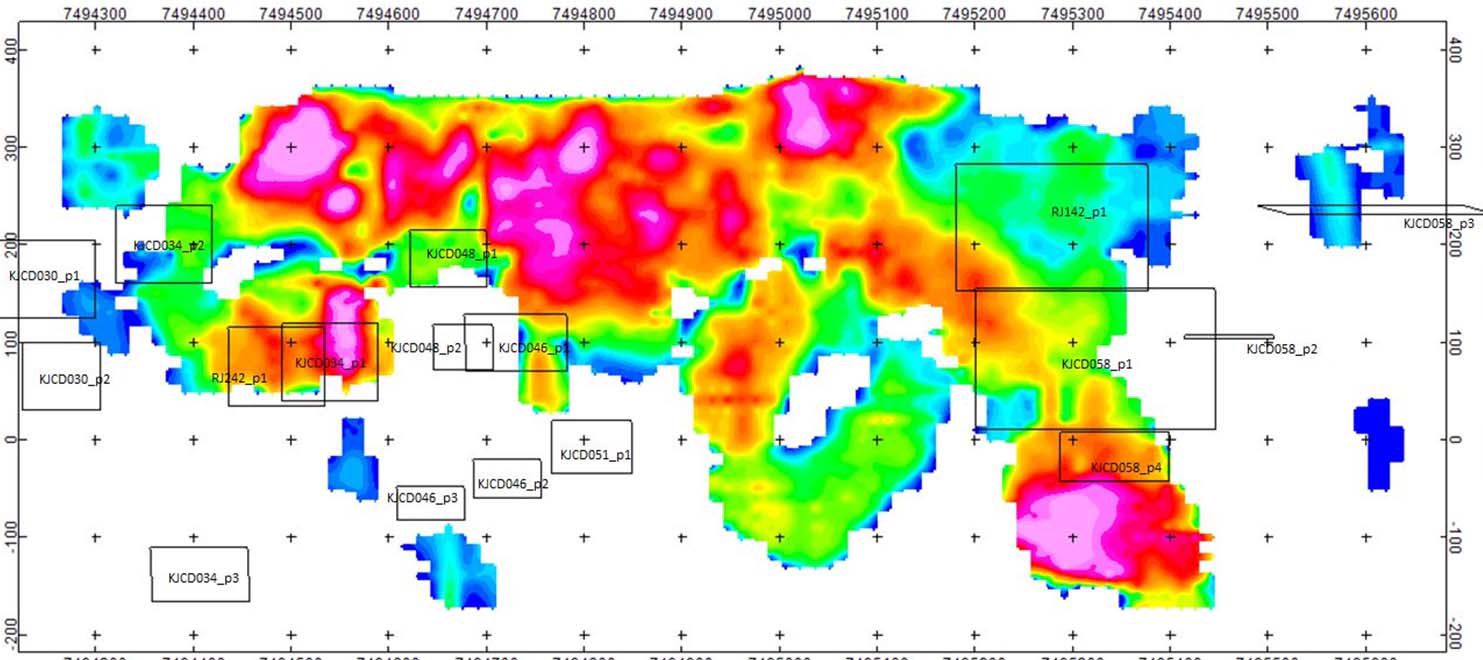 - follow up the massive lead-silver-zinc sulphide intersected at Reward in KJCD042 and KJCD048 – the DHEM survey indicates that the high grade mineralisation extends beyond the limits of current drilling and may improve