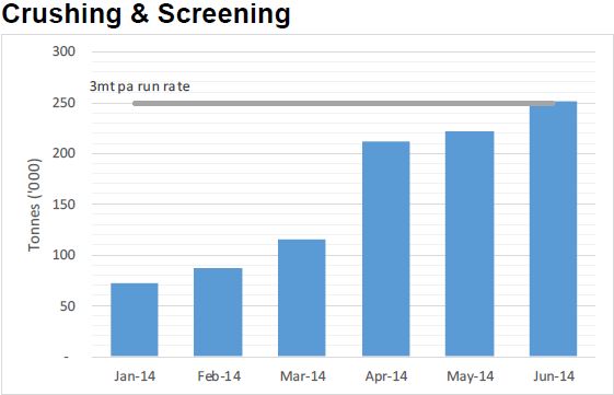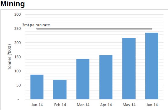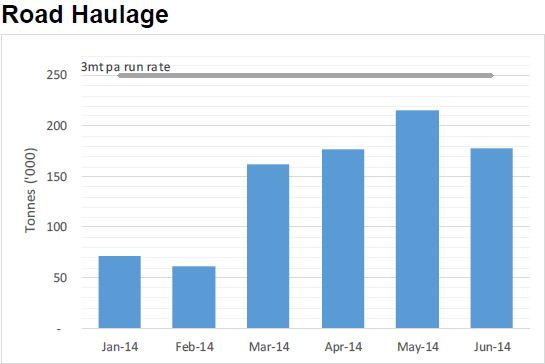- Successful transition to new Barging Operator from 15 June 2014 results in a 50% improvement in shipping volumes in the second half of June 2014, with WDR's targeted run rate of 10,000 tonnes per day being achieved during discharge to final vessel of the month;