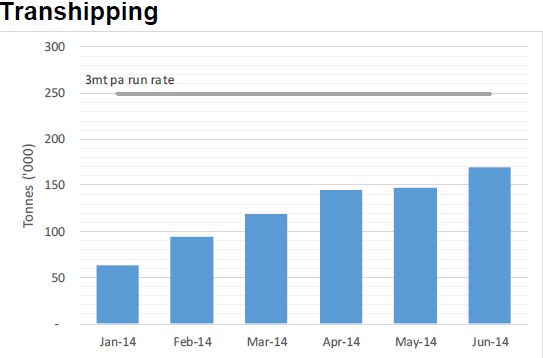- Deployment of new multicat tug on 23 June 2014 results in record ship loading timeframe of 5 days for a 55,000 tonne vessel prior to 30 June 2014;