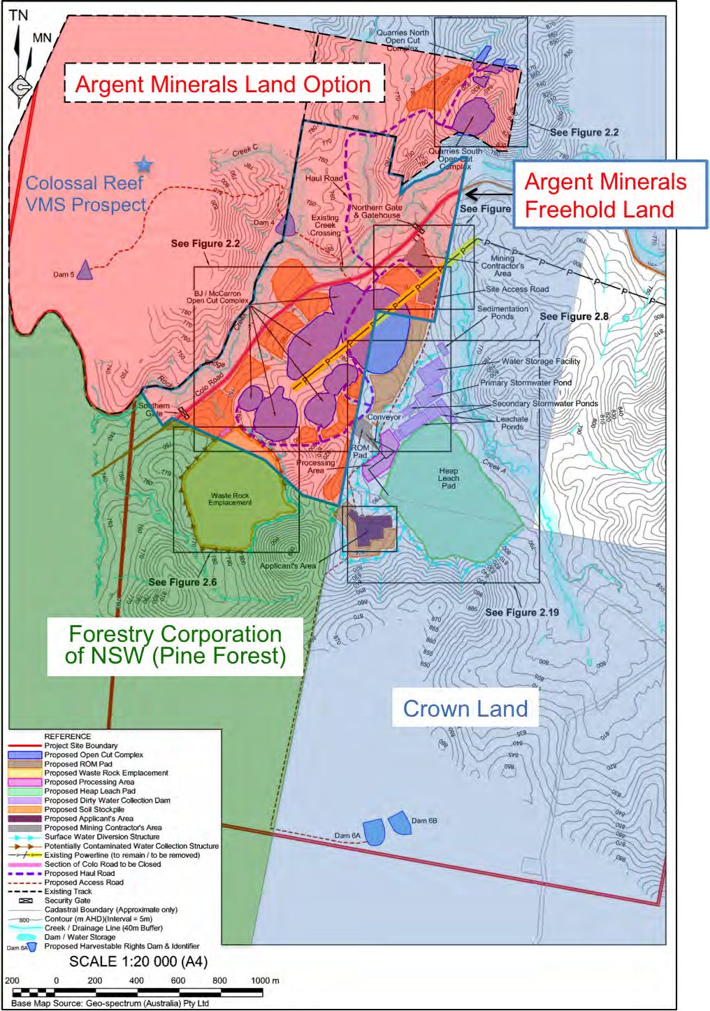 ASX:ARD) is an Australian publicly listed company with a 100% interest in a silver/gold project at Kempfield NSW. Work is underway on the preparation of an EIS and a feasibility study for the first stage of the project which will involve heap leaching some 8.8 million tonnes of mainly oxide and transitional material to produce over 9.5 million ounces of silver and 15,000 ounces of gold over a 5 year mine life. Argent is also earning up to a 70% interest in two other NSW projects - gold at West Wyalong and base metals at Sunny Corner.