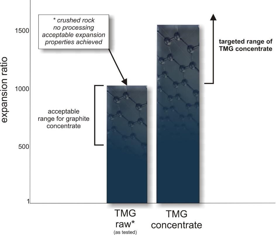 The results from the initial expansion tests have confirmed the high quality nature, expandability and market leading potential of TMG concentrate. Even without being processed, raw TGM was expanded up to 1,000 times.