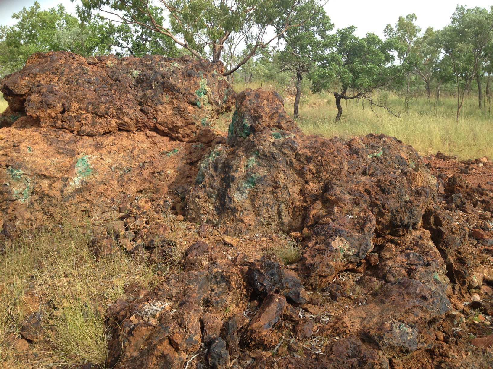 Sandfire previously drilled several diamond and reverse circulation holes in the Coppermine Creek area. One of their diamond holes intersected the Coppermine Creek copper mineralised structure, which can be seen at surface as outcropping gossans with malachite staining (see Figure 4).