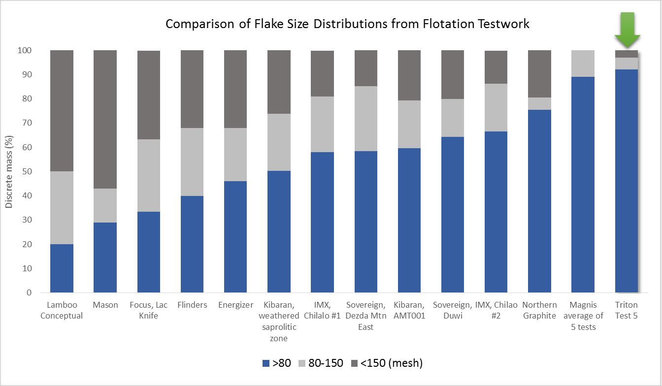 Triton is extremely encouraged by these outstanding metallurgical and flotation results as it appears the flake distribution are up there with the best, if not the best in the world, based of published results.