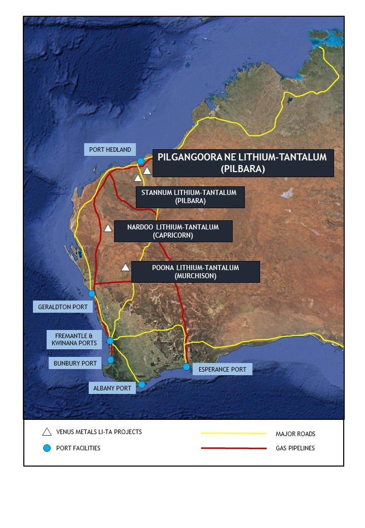 ASX:VMC) ("Venus Metals") are pleased to announce that the Company has extended its tenement holdings in the Pilgangoora region, a recognised 'lithium hot spot', having made an additional exploration licence application (ELA 45/4684). The Pilgangoora Northeast Lithium-Tantalum project is located in the Pilbara region of Western Australia, along strike from and northeast of Pilbara Minerals Ltd's developing Pilgangoora Lithium-Tantalum project (Figures 1 and 2 in link below).