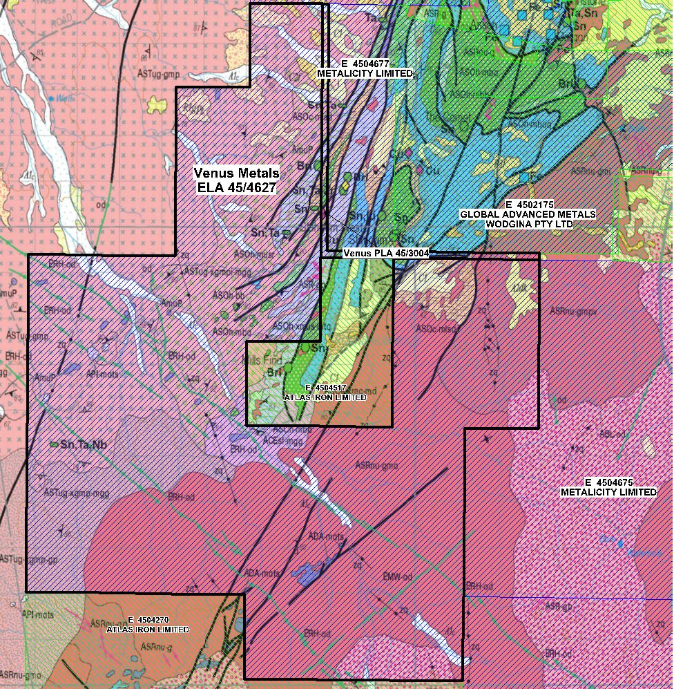 The recent EL application (ELA45/4684) at Pilgangoora NE adds significantly to the Company's project area in the region and further complements Venus's Stannum Project (ELA45/4627 and PLA 45/3004) (located SW of Pilgangoora and abutting Metalicity Limited and Global Advanced Metals Wodgina Pty Limited tenements at Wodgina) (Figure 4 in link below).