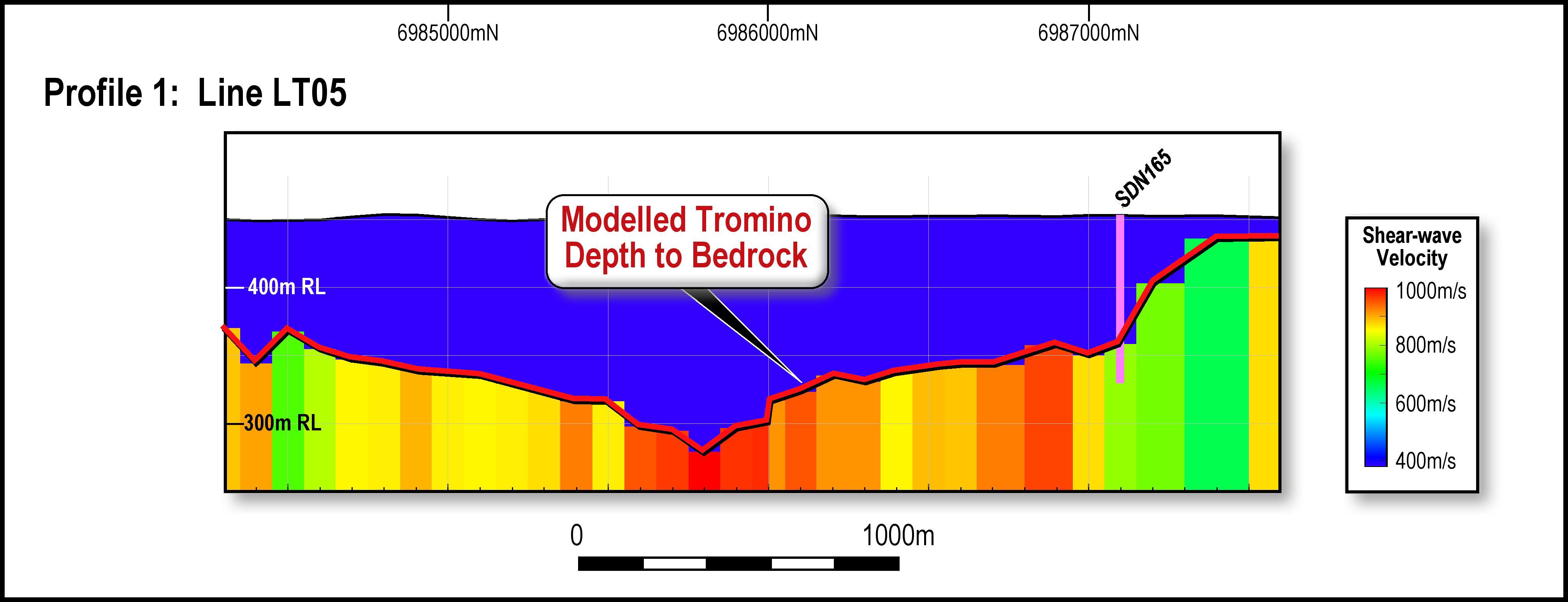The survey data was very good quality and with calibration against existing drill holes with known depths to basement has successfully delineated an approximately east-west trending palaeovalley on five survey section lines (Figure 3 in link below).