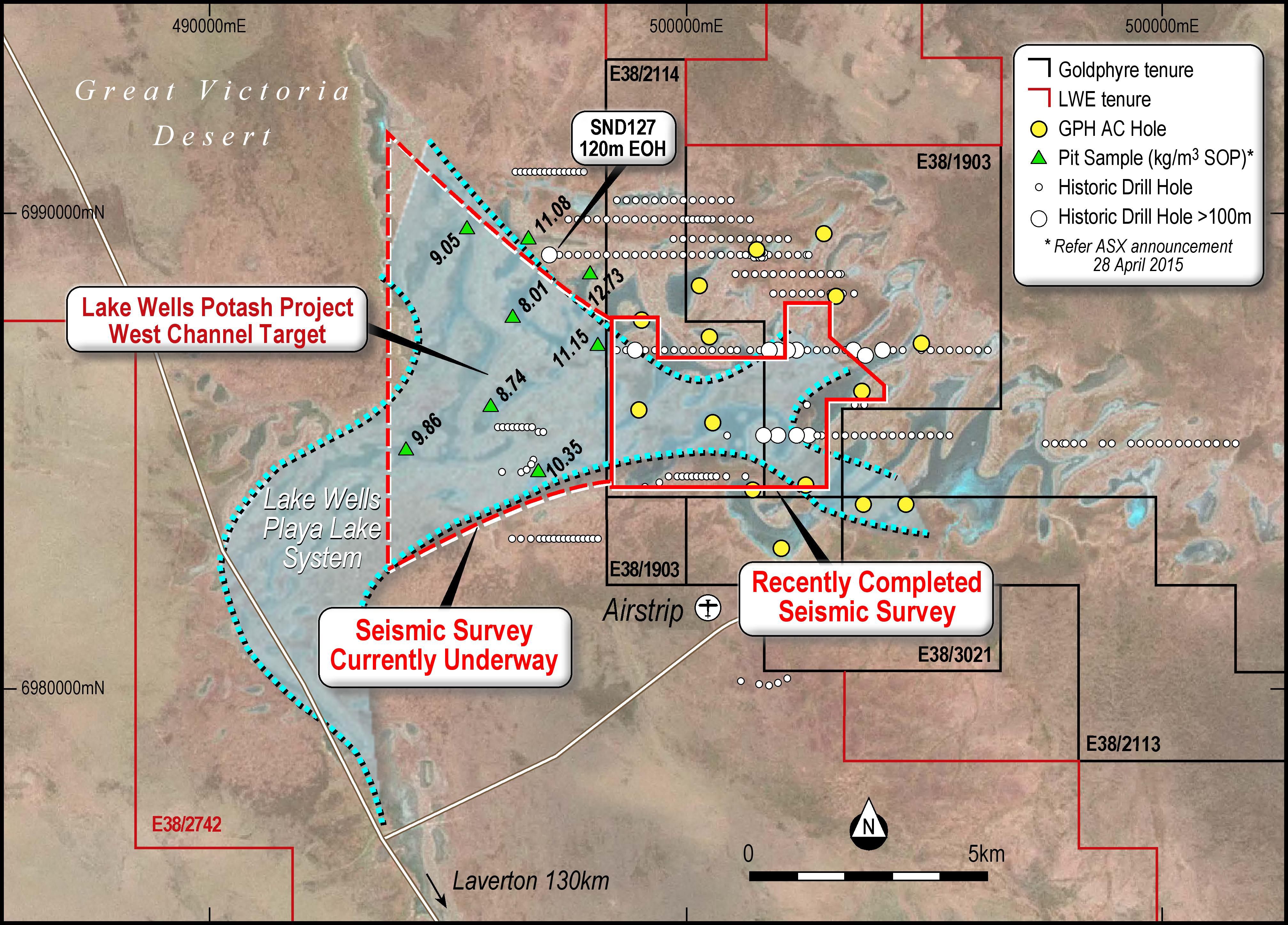 - Survey shows the palaeovalley trends west into neighbouring tenements held by Lake Wells Exploration Pty Ltd: Agreement gives Goldphyre the potash rights on these tenements