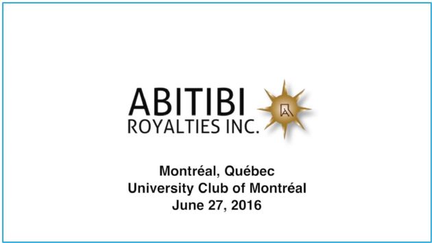 Quebec, Mar 30, 2016 AEST (ABN Newswire) - Abitibi Royalties Inc. (
