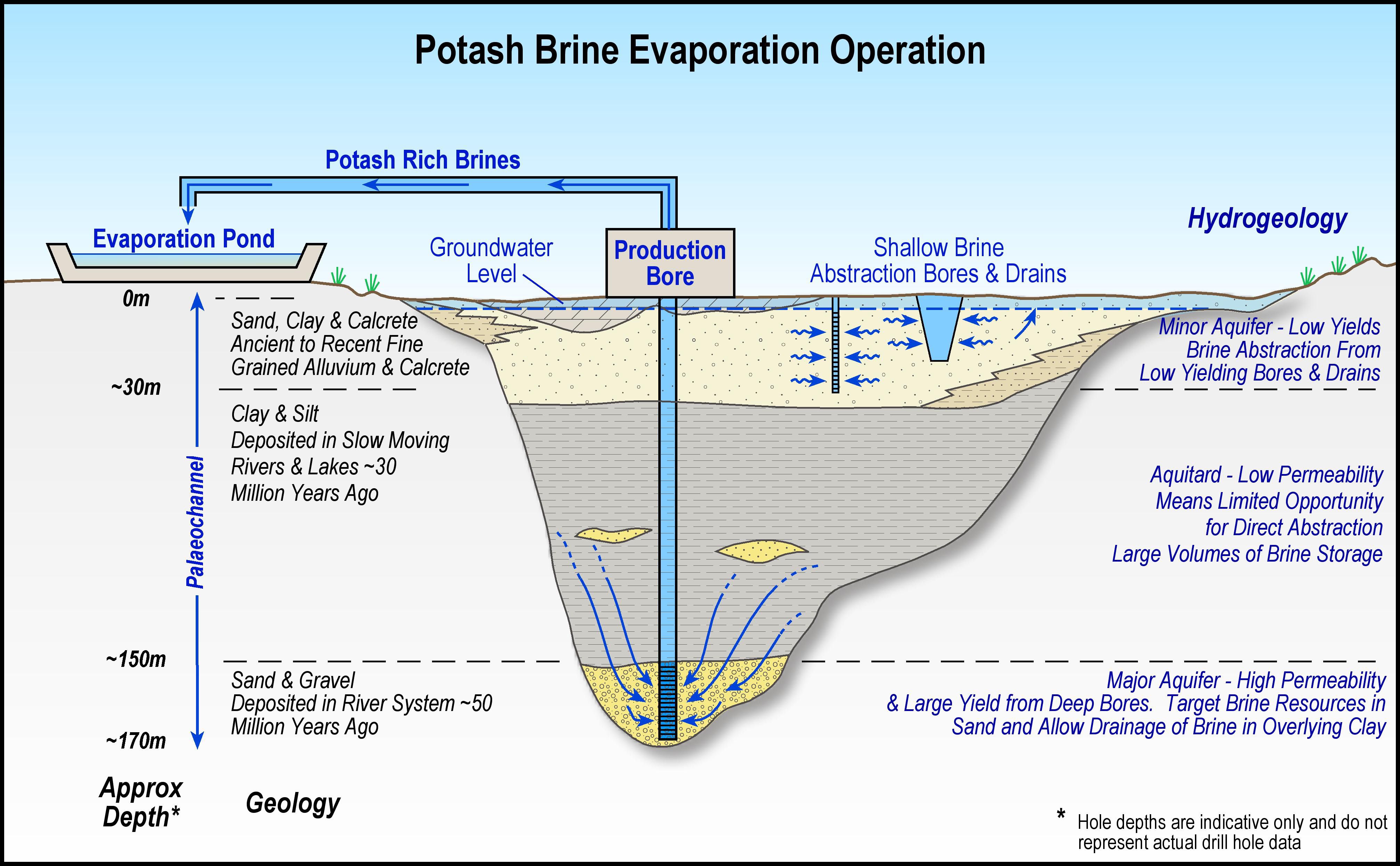 -- 79 - 123 million tonnes total in-situ Sulphate of Potash at a grade range of 11,400 - 13,900 mg/l (for industry comparison purposes only)