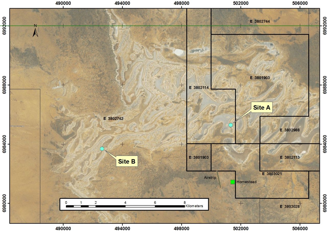 The first phase of the testing will involve the installation of four (4) test-production bores at two sites, A and B as shown in Figure 2 (see link below).