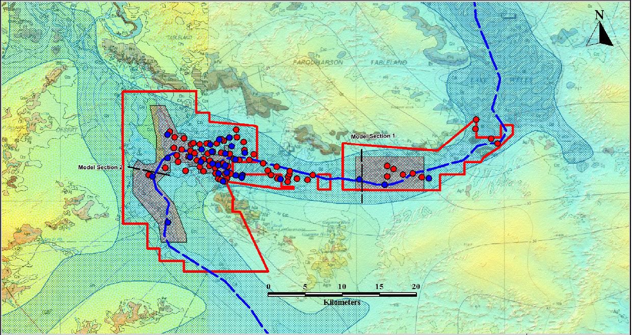 - Using specific yield2 (drainable porosity), Inferred Mineral Resource Estimate of 18.4 million tonnes of SOP at 8.05 kg/m3 including: