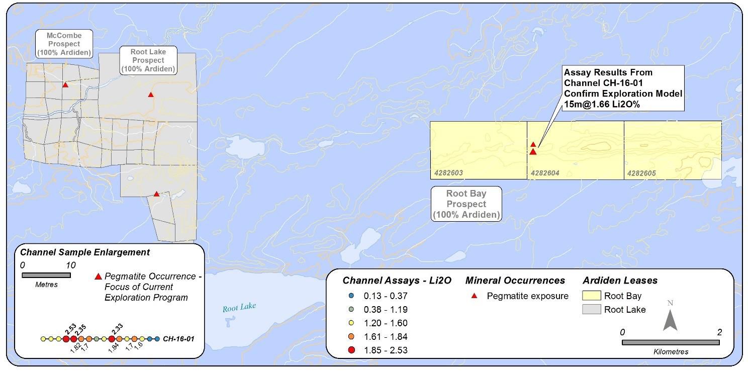 - Ardiden stakes Root Bay Lithium Project.