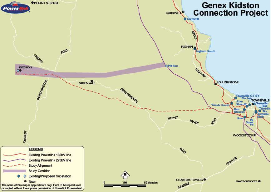 Studies commissioned by Genex indicate that the existing Powerlink transmission network in North Queensland has the capacity to integrate the Kidston Pumped Storage Hydro Project across all its operating modes. Investigations indicate that a suitable connection point for the new transmission line with Powerlink's main 275kv network between Ross in Townsville and Chalumbin near Cairns will be in the vicinity of Mt Fox, which is located approximately 115km northwest of Townsville.