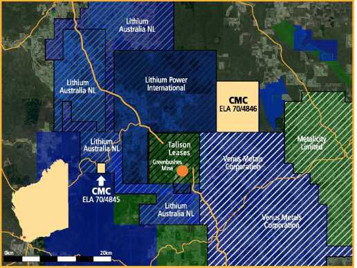 The tenements were selected by CMC due to their close proximity to Greenbushes mine and the very limited historical exploration for lithium over the application area.