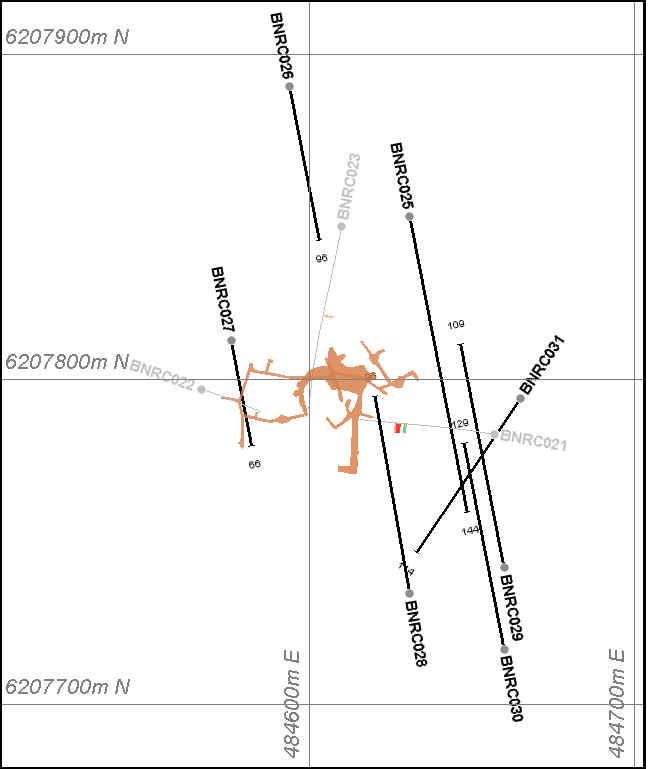 Preliminary results from metallurgical analysis have been received. A bulk sample of 26.3 kg sample taken from drill hole BNR0011, interval 51-52m, was processed at the ALS laboratory in Burnie, Tasmania. The laboratory summarised the results of their testing as: