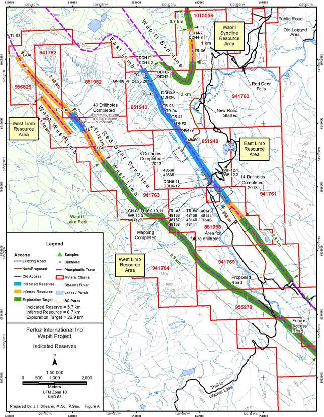 - The Company completed the road construction at its Wapiti Phosphate Project in British Columbia, Canada. This new access trail has allowed Fertoz to commence mining of material utilising its 17,500-tonne bulk sample permit at Wapiti. This road access and site infrastructure will provide longer term access to the Company's proposed mine at Wapiti once the Company obtains approval for its 75,000tpa small mine permit. As shown in the December 2016 Appendix 5B the Company spent approximately A$859,000 on developing the infrastructure and mining at Wapiti. The mining process is relatively simple, with at-surface material initially blasted to loosen both material and overburden, followed by simple mining via an excavator to extract material.