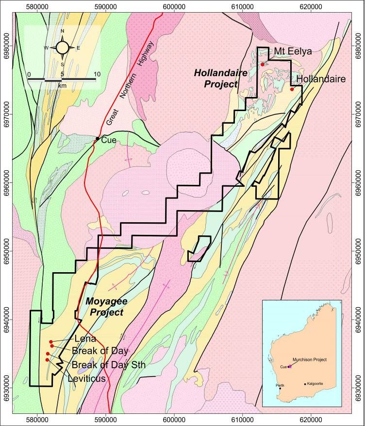 The Cue Project tenements cover approximately 272km2 of tenure which includes the Moyagee and Hollandaire Mineral Resources and Reserves (See MGV ASX announcement 26 October 2016, "2016 Annual Report - Replacement Report").