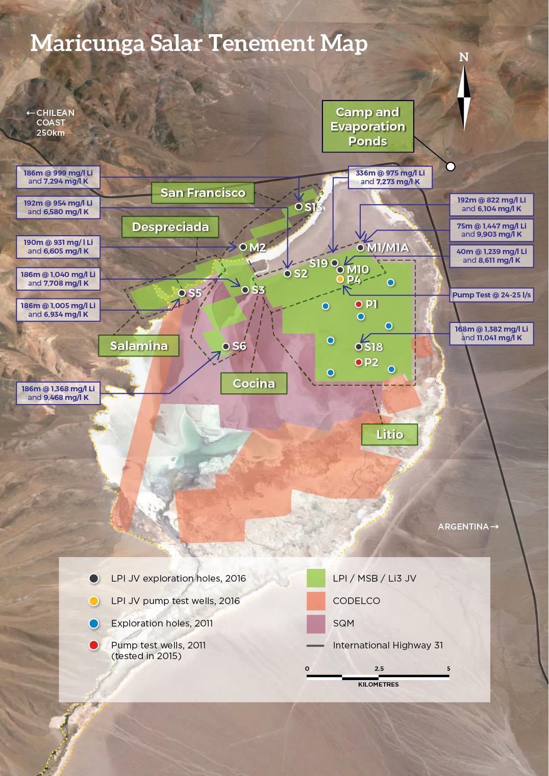 The Maricunga JV is 50%-owned by LPI. The project is regarded by LPI management as one of the highest quality undeveloped pre-production lithium project globally, with a very high grade of both lithium and potassium. The Litio properties in the salar has been subject to significant past exploration by our JV partners, Minera Salar Blanco and Li3 Energy, in order to generate the existing lithium and potassium resource. The current drilling program and pump test are targeting an expansion of that resource on both the existing properties and additional properties (which have been acquired since), with a new JORC compliant resource estimate anticipated during 1H17.