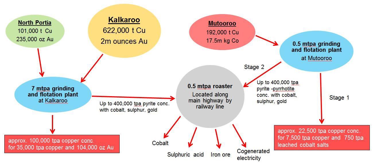 4. When the Kalkaroo deposit is developed it will also generate a long term cobaltian pyrite supply feed for a roaster and acid plant in addition to the Mutooroo sulphide ore.