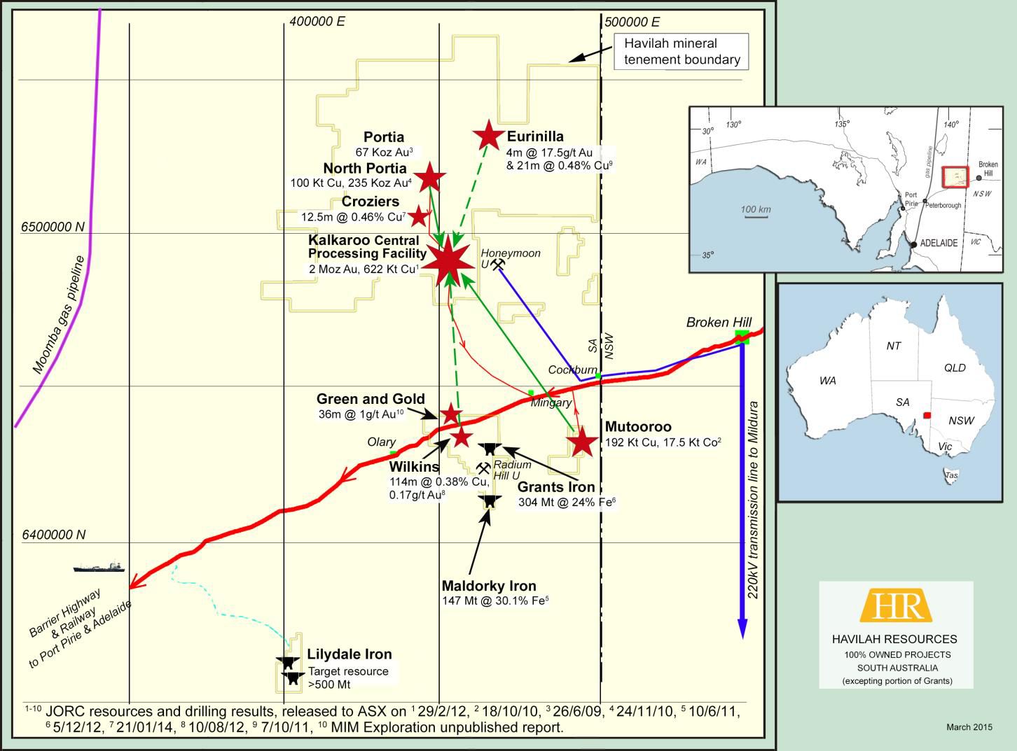 Havilah has formulated a staged conceptual strategy for exploiting its cobalt resources in conjunction with copper production, in accordance with the Company's previously stated objective of monetising its multi-metal project portfolio. This will commence with the Mutooroo deposit as shown on the attached diagram and outlined below :