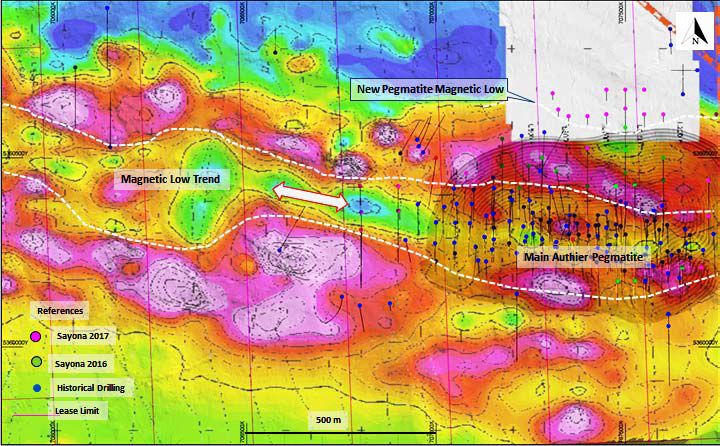 The Company believes the western sector remains highly prospective for further spodumene mineralisation. Figure 4 (see the link below) demonstrates the Authier main pegmatite in relation to the local magnetic geophysical image. The main orebody is strongly correlated to a deep magnetic low which extends to the western tenement boundary. Whilst drilling during the Phase 2 drilling intersected a fault zone at section line 707250, mineralisation was still evident in drill core and the Company believes there is no reason it shouldn't continue to the western boundary, although further drilling we will be required to confirm the hypothesis.